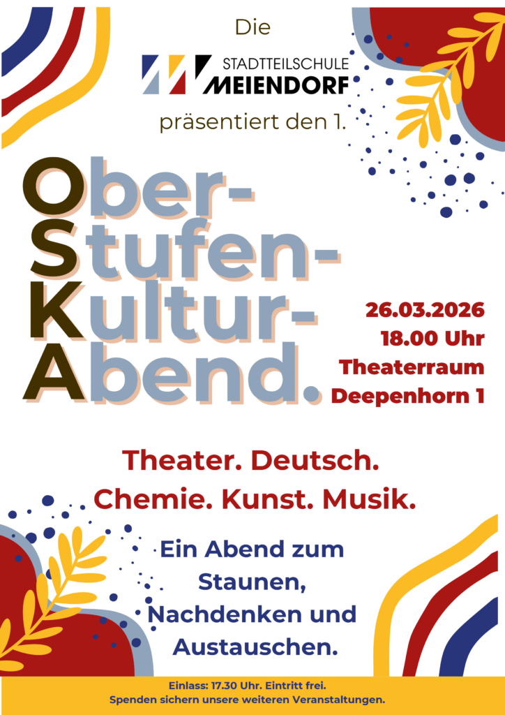 Die Stadtteilschule Meiendorf lädt herzlich ein zum 1. Oberstufen-Kultur-Abend – ein Abend voller Kreativität, Ideen und beeindruckender Talente!